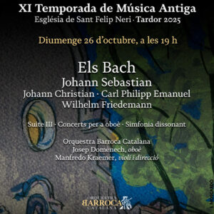 Concert de la XI Temporada de Música Antiga📅 Diumenge 26 d’octubre, 19 h · 📍 Església de Sant Felip Neri El primer concert de la